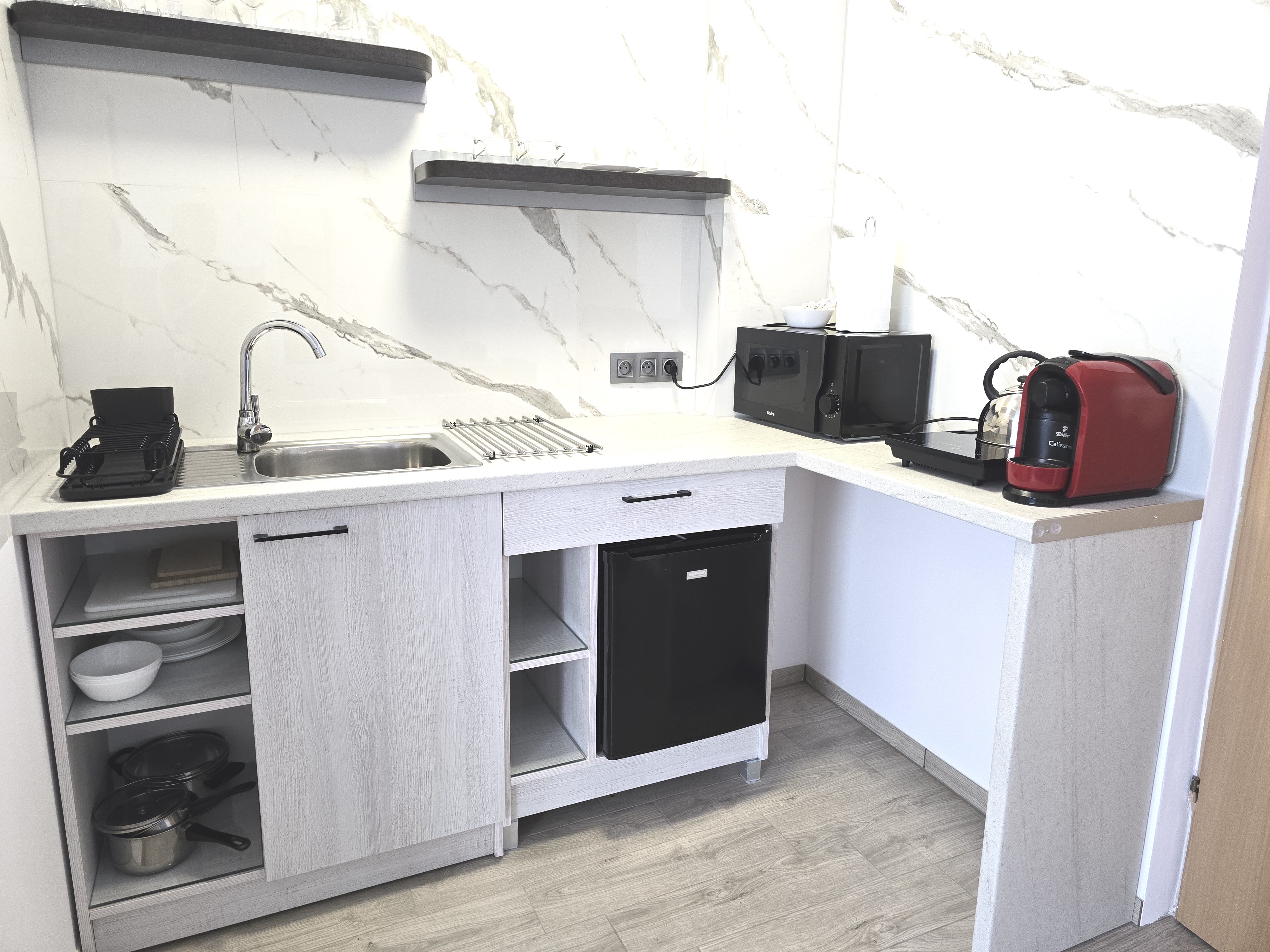 Pokoje dwuosobowe z łóżkami małżeńskimi i z aneksami kuchennymi, bez balkonów: