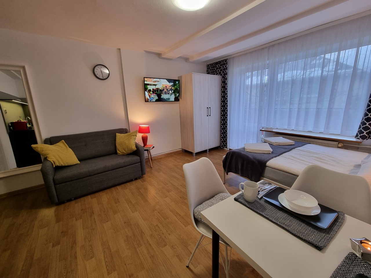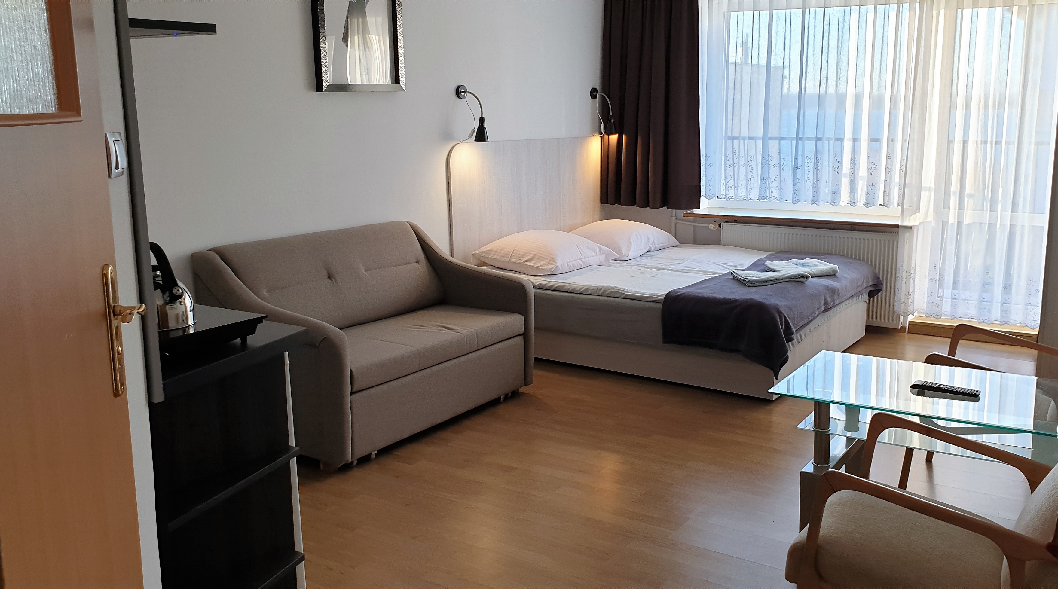 Pokój dwu-trzyosobowy z aneksem kuchennym, bez balkonu,